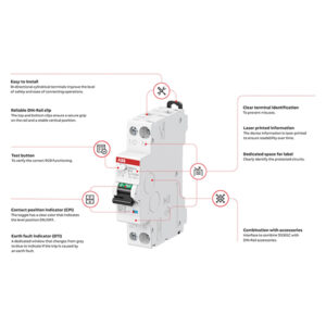 ABB’s DS201 RCBO provides comprehensive protection for single-phase circuits, ensuring safety against overload, short-circuit currents, and various earth fault conditions. It combines robust protection capabilities with user-friendly features for ease of installation and maintenance.